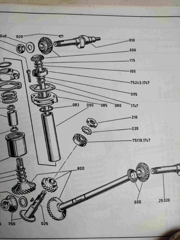 I know that a few pieces are required to link the angle drive to the camshaft inside the bevel head, according to the spare parts catalog: