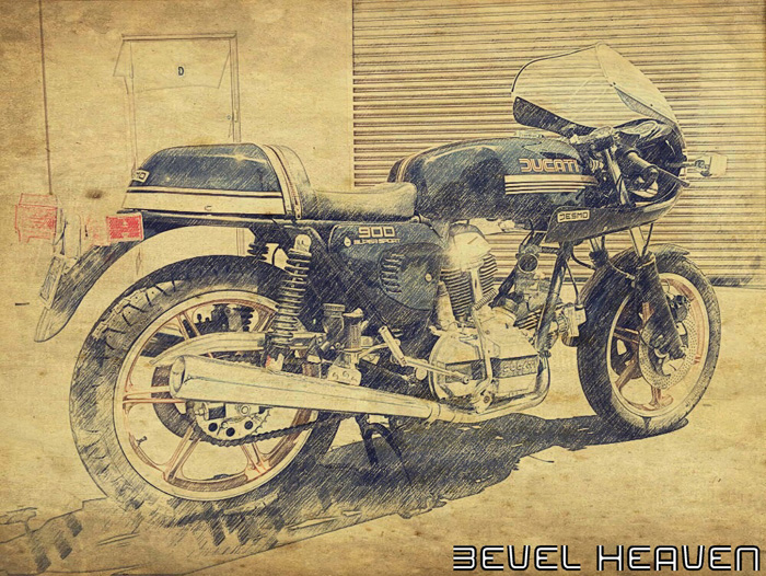 Here is one of my Ducati 900 Super Sports that I sketched up. This particular bike has only 2859 miles on it, and everything is original. The air boxes were removed and are in a box along with the rubber snorkels. Hope you like it.